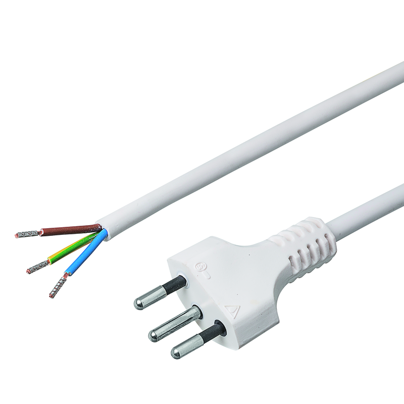 Anschlusskabel Td H05VV-F 3G1mm2, Kabellänge 1.5m, 1. Seite Stecker T12, 2. Seite 30mm abgemantelt und 6mm abisoliert mit Aderendhülsen, weiss