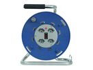 Kunststoff Kabelrolle LOOP 4xT13, ohne Kabel, EIN-AUS Schalter beleuchtet, Thermoschutzschalter, patentierte Konusbremse, Kabelführung, blau/grau