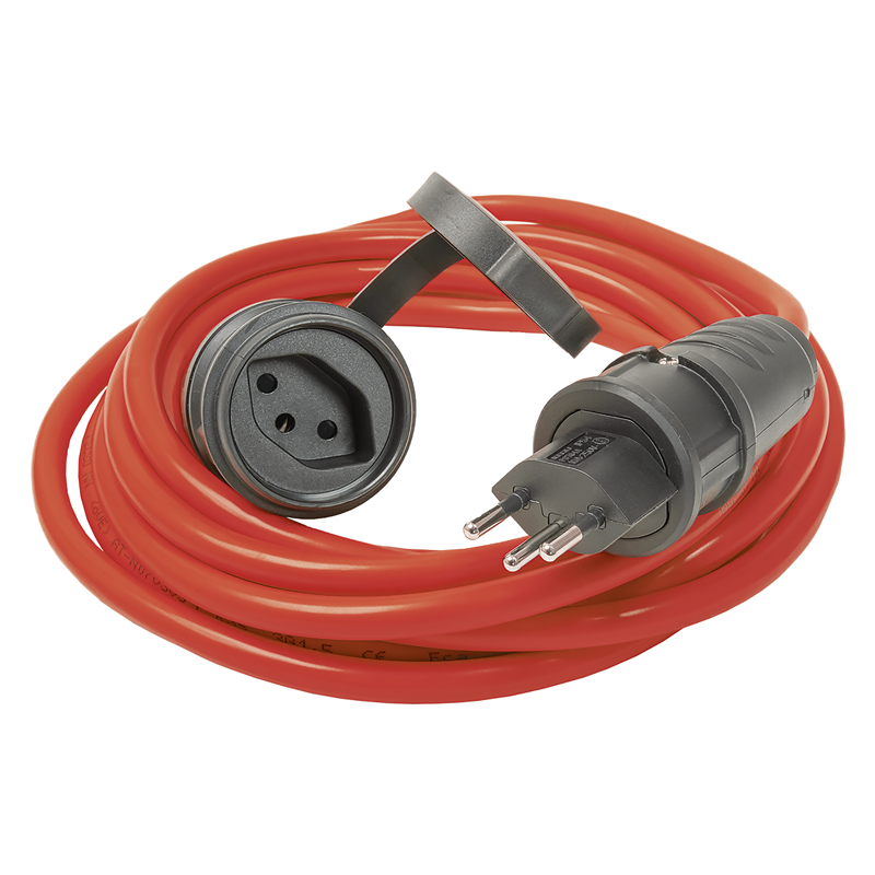 Prolunga elettrica Bauflex N07V3V3-F 3G1.5mm2 rosso, lunghezza del cavo 10m, 1. lato spina TPE T12 nero, 2. lato presa T13 IP20 nero